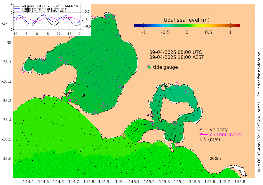 -11cm San Remo -19cm Elizabeth Island -34cm Bouchier Channel -36cm Tooradin -5cm Cowes Jetty -9cm Western Port (Stony Point) -36cm Western Port (Sandy Point) 17cm Flinders Jetty -22cm Mornington -23cm Sandringham -21cm Rosebud Jetty -21cm Hovell Pile -9cm South Channel 6cm Point Lonsdale -4cm Queenscliff -21cm West Channel Pile 15cm Barwon Heads -20cm St Leonards -25cm Point Richards (Corio Bay) -23cm Point Richards Channel -26cm Geelong -20cm Werribee -23cm Altona -23cm Wilson Spit -24cm Melbourne (Williamstown) -24cm St Kilda