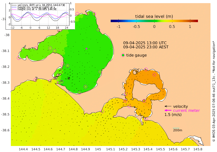 54cm San Remo 55cm Elizabeth Island 72cm Bouchier Channel 68cm Tooradin 46cm Cowes Jetty 53cm Western Port (Stony Point) 70cm Western Port (Sandy Point) 28cm Flinders Jetty 14cm Mornington 14cm Sandringham 13cm Rosebud Jetty 14cm Hovell Pile 14cm South Channel 19cm Point Lonsdale 14cm Queenscliff 14cm West Channel Pile 21cm Barwon Heads 14cm St Leonards 17cm Point Richards (Corio Bay) 17cm Point Richards Channel 17cm Geelong 13cm Werribee 15cm Altona 18cm Wilson Spit 16cm Melbourne (Williamstown) 16cm St Kilda