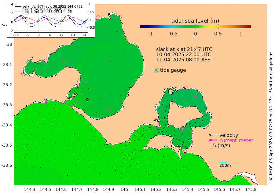 -8cm San Remo -12cm Elizabeth Island -23cm Bouchier Channel -26cm Tooradin -6cm Cowes Jetty -5cm Western Port (Stony Point) -26cm Western Port (Sandy Point) 12cm Flinders Jetty -15cm Mornington -14cm Sandringham -13cm Rosebud Jetty -12cm Hovell Pile -3cm South Channel 5cm Point Lonsdale 0cm Queenscliff -12cm West Channel Pile 12cm Barwon Heads -14cm St Leonards -15cm Point Richards (Corio Bay) -16cm Point Richards Channel -17cm Geelong -13cm Werribee -15cm Altona -17cm Wilson Spit -15cm Melbourne (Williamstown) -15cm St Kilda