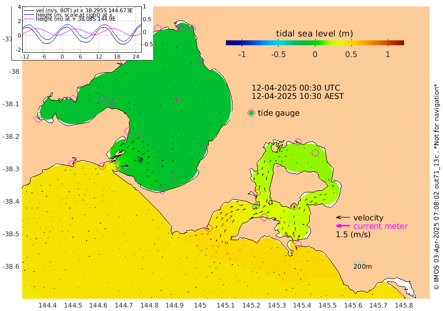 34cm San Remo 22cm Elizabeth Island 17cm Bouchier Channel 9cm Tooradin 31cm Cowes Jetty 33cm Western Port (Stony Point) 14cm Western Port (Sandy Point) 44cm Flinders Jetty -13cm Mornington -12cm Sandringham -11cm Rosebud Jetty -9cm Hovell Pile 7cm South Channel 27cm Point Lonsdale 12cm Queenscliff -9cm West Channel Pile 40cm Barwon Heads -11cm St Leonards -12cm Point Richards (Corio Bay) -12cm Point Richards Channel -13cm Geelong -10cm Werribee -12cm Altona -14cm Wilson Spit -11cm Melbourne (Williamstown) -12cm St Kilda