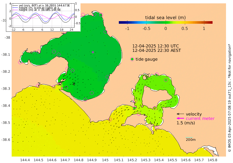 29cm San Remo 19cm Elizabeth Island 10cm Bouchier Channel 1cm Tooradin 26cm Cowes Jetty 29cm Western Port (Stony Point) 8cm Western Port (Sandy Point) 43cm Flinders Jetty -8cm Mornington -9cm Sandringham -7cm Rosebud Jetty -7cm Hovell Pile 7cm South Channel 26cm Point Lonsdale 14cm Queenscliff -7cm West Channel Pile 36cm Barwon Heads -7cm St Leonards -9cm Point Richards (Corio Bay) -8cm Point Richards Channel -12cm Geelong -10cm Werribee -9cm Altona -9cm Wilson Spit -9cm Melbourne (Williamstown) -9cm St Kilda