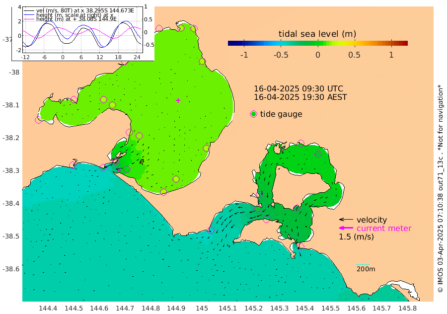 -31cm San Remo -16cm Elizabeth Island -6cm Bouchier Channel 6cm Tooradin -31cm Cowes Jetty -26cm Western Port (Stony Point) -2cm Western Port (Sandy Point) -47cm Flinders Jetty 20cm Mornington 20cm Sandringham 19cm Rosebud Jetty 19cm Hovell Pile 0cm South Channel -25cm Point Lonsdale -7cm Queenscliff 19cm West Channel Pile -41cm Barwon Heads 18cm St Leonards 22cm Point Richards (Corio Bay) 20cm Point Richards Channel 24cm Geelong 22cm Werribee 20cm Altona 22cm Wilson Spit 21cm Melbourne (Williamstown) 22cm St Kilda