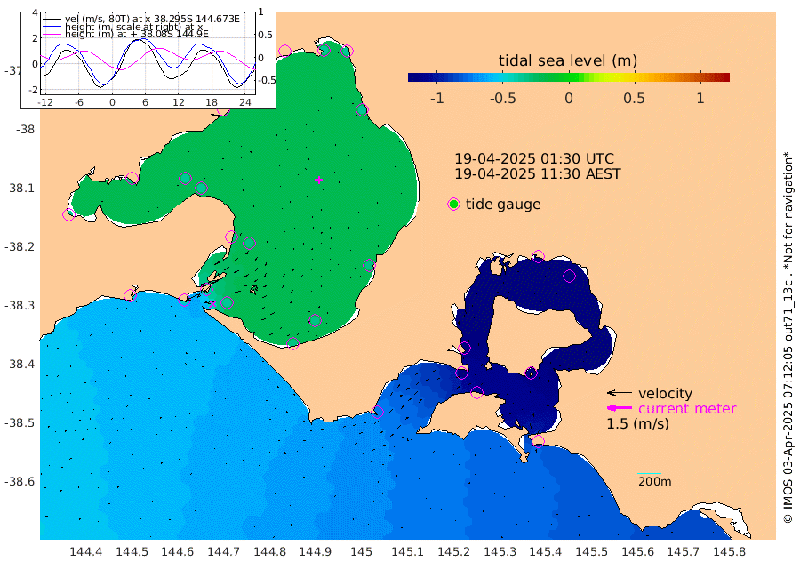 -117cm San Remo -122cm Elizabeth Island -141cm Bouchier Channel -138cm Tooradin -107cm Cowes Jetty -115cm Western Port (Stony Point) -140cm Western Port (Sandy Point) -72cm Flinders Jetty -31cm Mornington -34cm Sandringham -31cm Rosebud Jetty -32cm Hovell Pile -36cm South Channel -44cm Point Lonsdale -38cm Queenscliff -34cm West Channel Pile -43cm Barwon Heads -33cm St Leonards -37cm Point Richards (Corio Bay) -35cm Point Richards Channel -37cm Geelong -31cm Werribee -35cm Altona -36cm Wilson Spit -35cm Melbourne (Williamstown) -36cm St Kilda