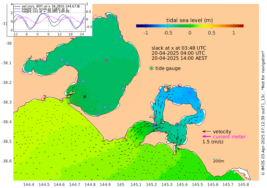 -24cm San Remo -39cm Elizabeth Island -65cm Bouchier Channel -75cm Tooradin -12cm Cowes Jetty -25cm Western Port (Stony Point) -69cm Western Port (Sandy Point) 26cm Flinders Jetty -35cm Mornington -38cm Sandringham -35cm Rosebud Jetty -35cm Hovell Pile -15cm South Channel 12cm Point Lonsdale -7cm Queenscliff -36cm West Channel Pile 27cm Barwon Heads -34cm St Leonards -41cm Point Richards (Corio Bay) -38cm Point Richards Channel -44cm Geelong -36cm Werribee -38cm Altona -40cm Wilson Spit -39cm Melbourne (Williamstown) -40cm St Kilda