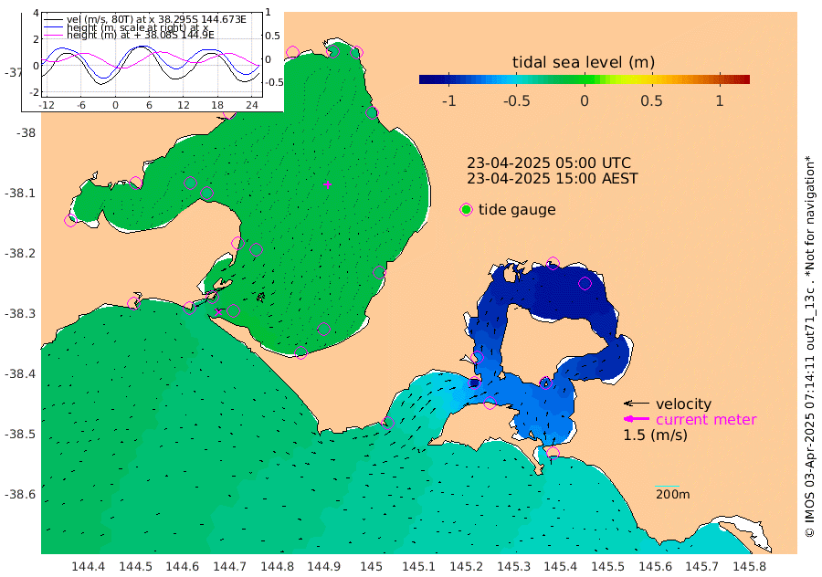-71cm San Remo -79cm Elizabeth Island -96cm Bouchier Channel -95cm Tooradin -57cm Cowes Jetty -69cm Western Port (Stony Point) -99cm Western Port (Sandy Point) -29cm Flinders Jetty -24cm Mornington -28cm Sandringham -25cm Rosebud Jetty -25cm Hovell Pile -22cm South Channel -18cm Point Lonsdale -20cm Queenscliff -25cm West Channel Pile -15cm Barwon Heads -24cm St Leonards -29cm Point Richards (Corio Bay) -27cm Point Richards Channel -29cm Geelong -20cm Werribee -27cm Altona -28cm Wilson Spit -27cm Melbourne (Williamstown) -27cm St Kilda