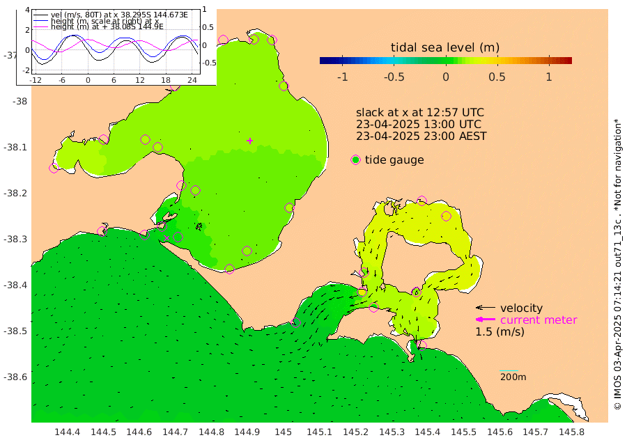 11cm San Remo 18cm Elizabeth Island 38cm Bouchier Channel 41cm Tooradin 4cm Cowes Jetty 11cm Western Port (Stony Point) 39cm Western Port (Sandy Point) -18cm Flinders Jetty 19cm Mornington 20cm Sandringham 17cm Rosebud Jetty 18cm Hovell Pile 6cm South Channel -6cm Point Lonsdale 2cm Queenscliff 18cm West Channel Pile -13cm Barwon Heads 17cm St Leonards 21cm Point Richards (Corio Bay) 21cm Point Richards Channel 23cm Geelong 15cm Werribee 21cm Altona 22cm Wilson Spit 20cm Melbourne (Williamstown) 20cm St Kilda
