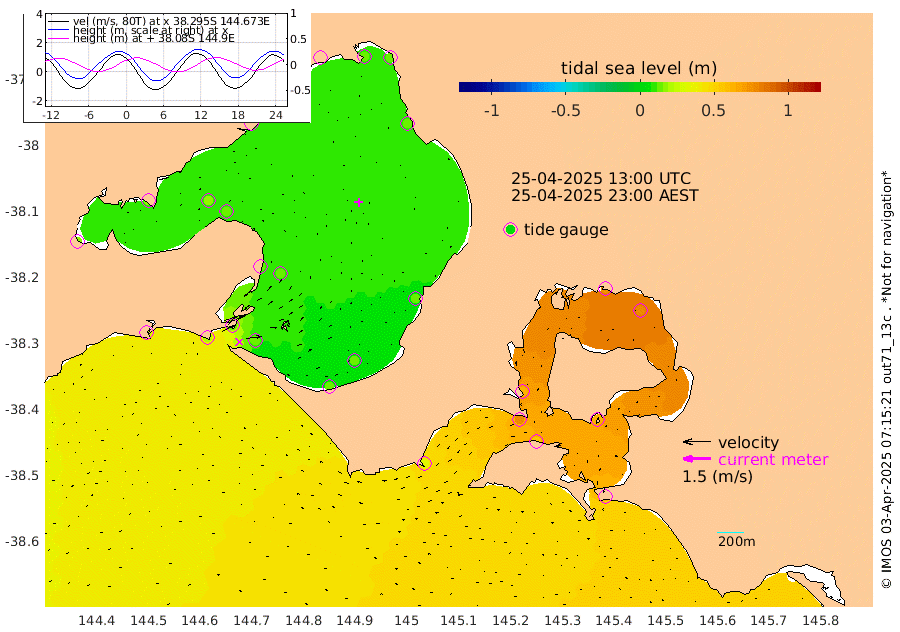 63cm San Remo 63cm Elizabeth Island 79cm Bouchier Channel 73cm Tooradin 53cm Cowes Jetty 60cm Western Port (Stony Point) 78cm Western Port (Sandy Point) 33cm Flinders Jetty 13cm Mornington 13cm Sandringham 11cm Rosebud Jetty 12cm Hovell Pile 14cm South Channel 20cm Point Lonsdale 15cm Queenscliff 13cm West Channel Pile 25cm Barwon Heads 13cm St Leonards 15cm Point Richards (Corio Bay) 16cm Point Richards Channel 15cm Geelong 8cm Werribee 14cm Altona 16cm Wilson Spit 14cm Melbourne (Williamstown) 15cm St Kilda