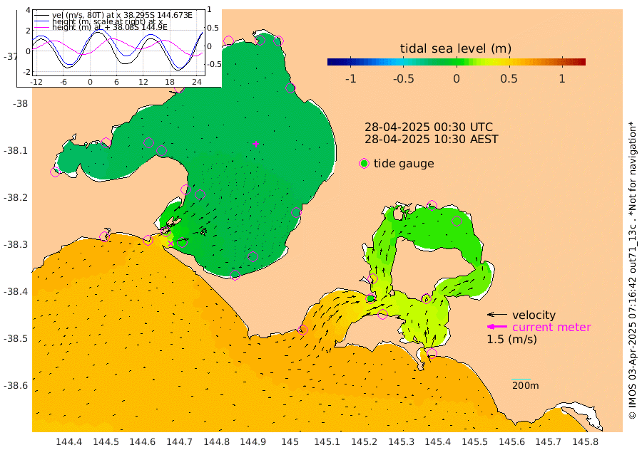 43cm San Remo 29cm Elizabeth Island 11cm Bouchier Channel -3cm Tooradin 44cm Cowes Jetty 41cm Western Port (Stony Point) 6cm Western Port (Sandy Point) 72cm Flinders Jetty -24cm Mornington -25cm Sandringham -21cm Rosebud Jetty -22cm Hovell Pile 5cm South Channel 40cm Point Lonsdale 15cm Queenscliff -22cm West Channel Pile 59cm Barwon Heads -22cm St Leonards -26cm Point Richards (Corio Bay) -25cm Point Richards Channel -29cm Geelong -25cm Werribee -25cm Altona -28cm Wilson Spit -26cm Melbourne (Williamstown) -26cm St Kilda