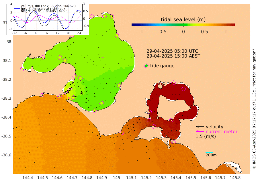 120cm San Remo 122cm Elizabeth Island 140cm Bouchier Channel 137cm Tooradin 111cm Cowes Jetty 113cm Western Port (Stony Point) 141cm Western Port (Sandy Point) 76cm Flinders Jetty 23cm Mornington 26cm Sandringham 23cm Rosebud Jetty 23cm Hovell Pile 31cm South Channel 46cm Point Lonsdale 33cm Queenscliff 25cm West Channel Pile 50cm Barwon Heads 25cm St Leonards 28cm Point Richards (Corio Bay) 28cm Point Richards Channel 29cm Geelong 20cm Werribee 27cm Altona 28cm Wilson Spit 26cm Melbourne (Williamstown) 27cm St Kilda