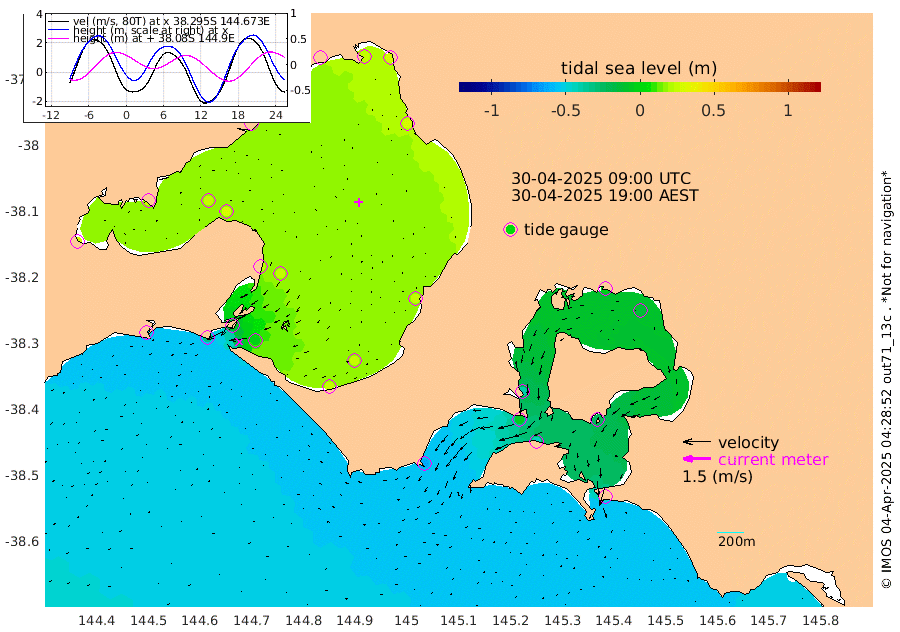 -43cm San Remo -24cm Elizabeth Island -15cm Bouchier Channel 0cm Tooradin -44cm Cowes Jetty -38cm Western Port (Stony Point) -7cm Western Port (Sandy Point) -62cm Flinders Jetty 25cm Mornington 27cm Sandringham 24cm Rosebud Jetty 23cm Hovell Pile 0cm South Channel -31cm Point Lonsdale -8cm Queenscliff 23cm West Channel Pile -52cm Barwon Heads 23cm St Leonards 27cm Point Richards (Corio Bay) 24cm Point Richards Channel 30cm Geelong 23cm Werribee 26cm Altona 27cm Wilson Spit 26cm Melbourne (Williamstown) 26cm St Kilda
