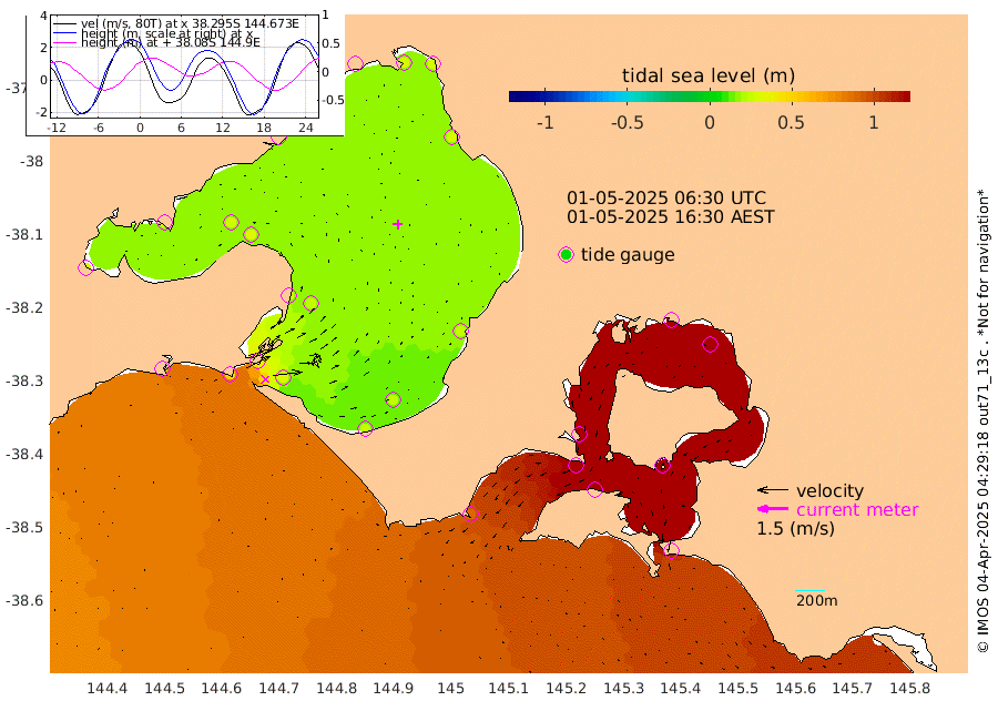 137cm San Remo 141cm Elizabeth Island 165cm Bouchier Channel 161cm Tooradin 130cm Cowes Jetty 133cm Western Port (Stony Point) 162cm Western Port (Sandy Point) 89cm Flinders Jetty 25cm Mornington 28cm Sandringham 24cm Rosebud Jetty 25cm Hovell Pile 33cm South Channel 52cm Point Lonsdale 36cm Queenscliff 26cm West Channel Pile 59cm Barwon Heads 27cm St Leonards 30cm Point Richards (Corio Bay) 30cm Point Richards Channel 31cm Geelong 22cm Werribee 29cm Altona 31cm Wilson Spit 27cm Melbourne (Williamstown) 29cm St Kilda