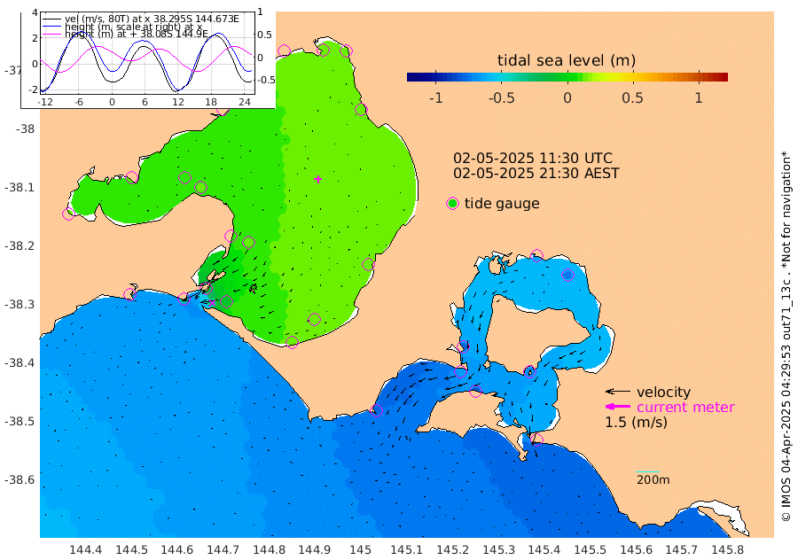-84cm San Remo -70cm Elizabeth Island -74cm Bouchier Channel -64cm Tooradin -81cm Cowes Jetty -78cm Western Port (Stony Point) -67cm Western Port (Sandy Point) -77cm Flinders Jetty 14cm Mornington 14cm Sandringham 14cm Rosebud Jetty 12cm Hovell Pile -8cm South Channel -37cm Point Lonsdale -14cm Queenscliff 12cm West Channel Pile -58cm Barwon Heads 10cm St Leonards 13cm Point Richards (Corio Bay) 11cm Point Richards Channel 15cm Geelong 11cm Werribee 12cm Altona 12cm Wilson Spit 13cm Melbourne (Williamstown) 13cm St Kilda