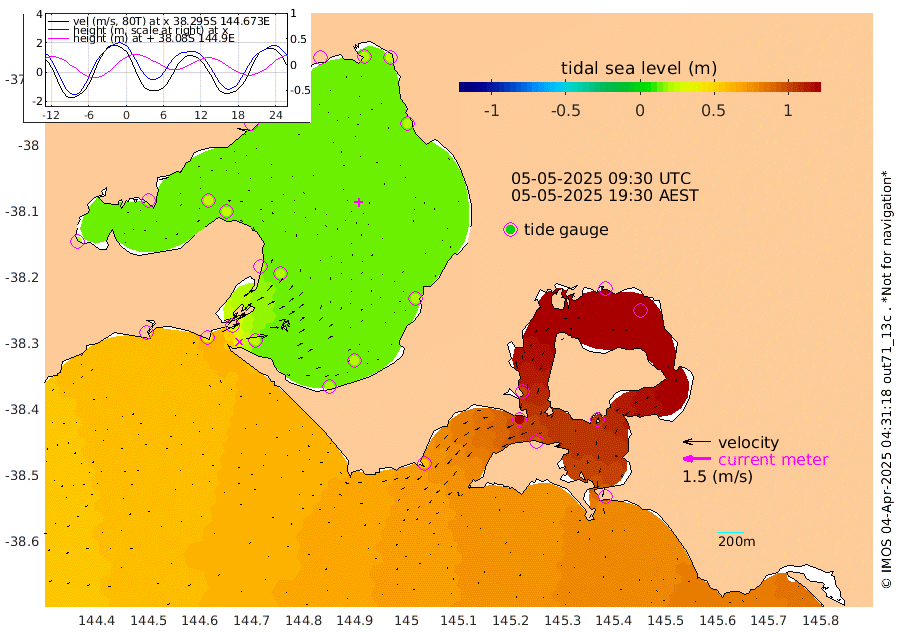 99cm San Remo 104cm Elizabeth Island 128cm Bouchier Channel 126cm Tooradin 91cm Cowes Jetty 101cm Western Port (Stony Point) 124cm Western Port (Sandy Point) 59cm Flinders Jetty 21cm Mornington 22cm Sandringham 19cm Rosebud Jetty 20cm Hovell Pile 24cm South Channel 34cm Point Lonsdale 24cm Queenscliff 21cm West Channel Pile 40cm Barwon Heads 22cm St Leonards 25cm Point Richards (Corio Bay) 25cm Point Richards Channel 25cm Geelong 20cm Werribee 23cm Altona 26cm Wilson Spit 22cm Melbourne (Williamstown) 24cm St Kilda