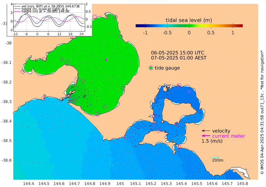 -73cm San Remo -68cm Elizabeth Island -71cm Bouchier Channel -69cm Tooradin -67cm Cowes Jetty -72cm Western Port (Stony Point) -70cm Western Port (Sandy Point) -59cm Flinders Jetty 2cm Mornington 2cm Sandringham 2cm Rosebud Jetty 2cm Hovell Pile -10cm South Channel -30cm Point Lonsdale -15cm Queenscliff 1cm West Channel Pile -44cm Barwon Heads -1cm St Leonards 1cm Point Richards (Corio Bay) 0cm Point Richards Channel 2cm Geelong 1cm Werribee 2cm Altona 0cm Wilson Spit 2cm Melbourne (Williamstown) 1cm St Kilda