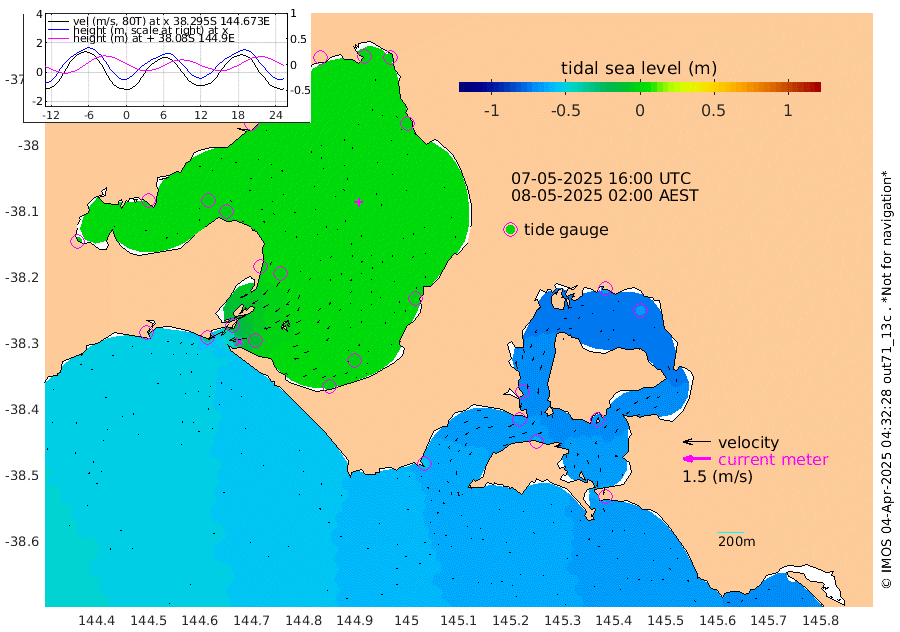 -69cm San Remo -64cm Elizabeth Island -67cm Bouchier Channel -65cm Tooradin -63cm Cowes Jetty -68cm Western Port (Stony Point) -67cm Western Port (Sandy Point) -56cm Flinders Jetty 0cm Mornington -1cm Sandringham -1cm Rosebud Jetty -1cm Hovell Pile -12cm South Channel -30cm Point Lonsdale -17cm Queenscliff -1cm West Channel Pile -42cm Barwon Heads -3cm St Leonards -1cm Point Richards (Corio Bay) -2cm Point Richards Channel -1cm Geelong -1cm Werribee -1cm Altona -3cm Wilson Spit -1cm Melbourne (Williamstown) -1cm St Kilda