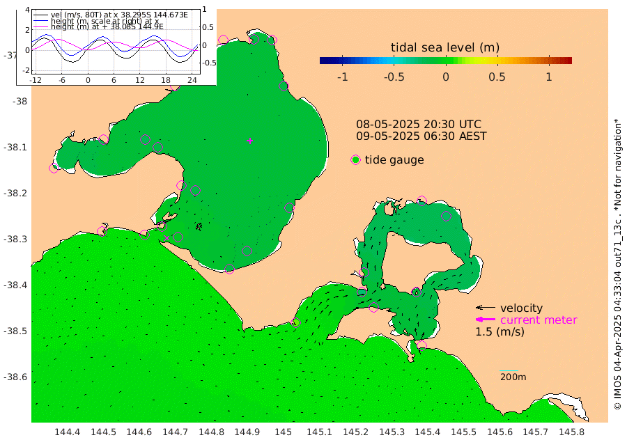 -8cm San Remo -13cm Elizabeth Island -24cm Bouchier Channel -27cm Tooradin -4cm Cowes Jetty -5cm Western Port (Stony Point) -28cm Western Port (Sandy Point) 13cm Flinders Jetty -18cm Mornington -17cm Sandringham -17cm Rosebud Jetty -16cm Hovell Pile -5cm South Channel 5cm Point Lonsdale -1cm Queenscliff -16cm West Channel Pile 12cm Barwon Heads -17cm St Leonards -19cm Point Richards (Corio Bay) -19cm Point Richards Channel -21cm Geelong -16cm Werribee -18cm Altona -21cm Wilson Spit -18cm Melbourne (Williamstown) -18cm St Kilda