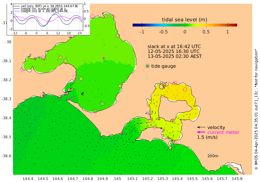 24cm San Remo 29cm Elizabeth Island 48cm Bouchier Channel 51cm Tooradin 21cm Cowes Jetty 22cm Western Port (Stony Point) 45cm Western Port (Sandy Point) -5cm Flinders Jetty 16cm Mornington 18cm Sandringham 14cm Rosebud Jetty 15cm Hovell Pile 5cm South Channel -5cm Point Lonsdale 1cm Queenscliff 15cm West Channel Pile -10cm Barwon Heads 15cm St Leonards 18cm Point Richards (Corio Bay) 18cm Point Richards Channel 20cm Geelong 17cm Werribee 18cm Altona 19cm Wilson Spit 18cm Melbourne (Williamstown) 18cm St Kilda