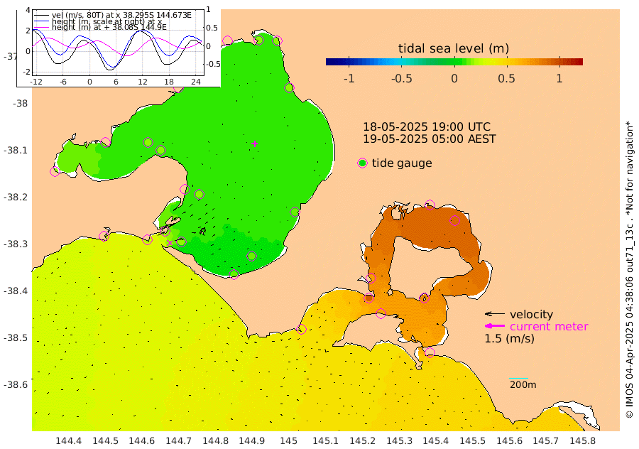 75cm San Remo 77cm Elizabeth Island 88cm Bouchier Channel 87cm Tooradin 65cm Cowes Jetty 70cm Western Port (Stony Point) 90cm Western Port (Sandy Point) 38cm Flinders Jetty 13cm Mornington 15cm Sandringham 14cm Rosebud Jetty 15cm Hovell Pile 17cm South Channel 19cm Point Lonsdale 17cm Queenscliff 15cm West Channel Pile 22cm Barwon Heads 14cm St Leonards 17cm Point Richards (Corio Bay) 16cm Point Richards Channel 17cm Geelong 13cm Werribee 16cm Altona 16cm Wilson Spit 16cm Melbourne (Williamstown) 17cm St Kilda