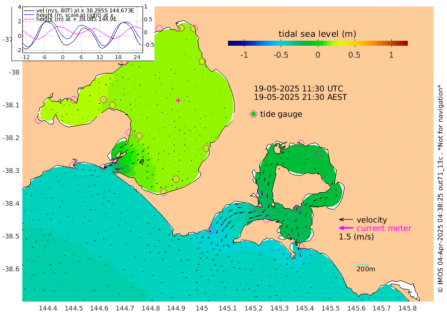 -35cm San Remo -23cm Elizabeth Island -8cm Bouchier Channel 0cm Tooradin -37cm Cowes Jetty -30cm Western Port (Stony Point) -7cm Western Port (Sandy Point) -50cm Flinders Jetty 22cm Mornington 25cm Sandringham 22cm Rosebud Jetty 21cm Hovell Pile 1cm South Channel -23cm Point Lonsdale -6cm Queenscliff 21cm West Channel Pile -41cm Barwon Heads 20cm St Leonards 24cm Point Richards (Corio Bay) 22cm Point Richards Channel 27cm Geelong 21cm Werribee 24cm Altona 25cm Wilson Spit 24cm Melbourne (Williamstown) 23cm St Kilda
