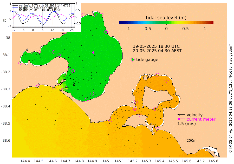 79cm San Remo 75cm Elizabeth Island 70cm Bouchier Channel 61cm Tooradin 72cm Cowes Jetty 73cm Western Port (Stony Point) 70cm Western Port (Sandy Point) 66cm Flinders Jetty 3cm Mornington 5cm Sandringham 6cm Rosebud Jetty 5cm Hovell Pile 19cm South Channel 36cm Point Lonsdale 24cm Queenscliff 6cm West Channel Pile 43cm Barwon Heads 5cm St Leonards 5cm Point Richards (Corio Bay) 5cm Point Richards Channel 3cm Geelong 3cm Werribee 5cm Altona 4cm Wilson Spit 5cm Melbourne (Williamstown) 6cm St Kilda