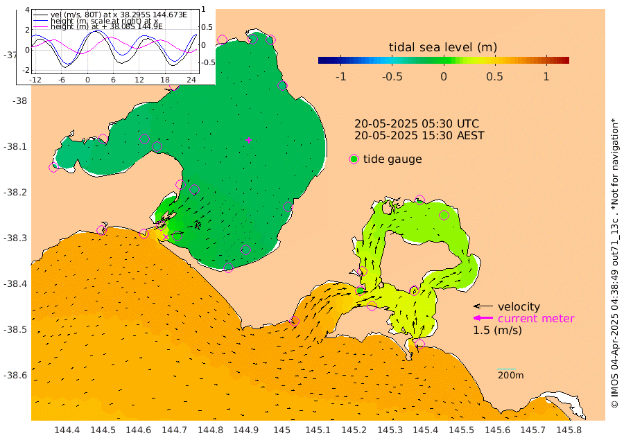 46cm San Remo 31cm Elizabeth Island 14cm Bouchier Channel 1cm Tooradin 53cm Cowes Jetty 45cm Western Port (Stony Point) 8cm Western Port (Sandy Point) 77cm Flinders Jetty -23cm Mornington -26cm Sandringham -24cm Rosebud Jetty -23cm Hovell Pile 4cm South Channel 42cm Point Lonsdale 14cm Queenscliff -23cm West Channel Pile 63cm Barwon Heads -20cm St Leonards -27cm Point Richards (Corio Bay) -24cm Point Richards Channel -31cm Geelong -25cm Werribee -26cm Altona -26cm Wilson Spit -27cm Melbourne (Williamstown) -26cm St Kilda
