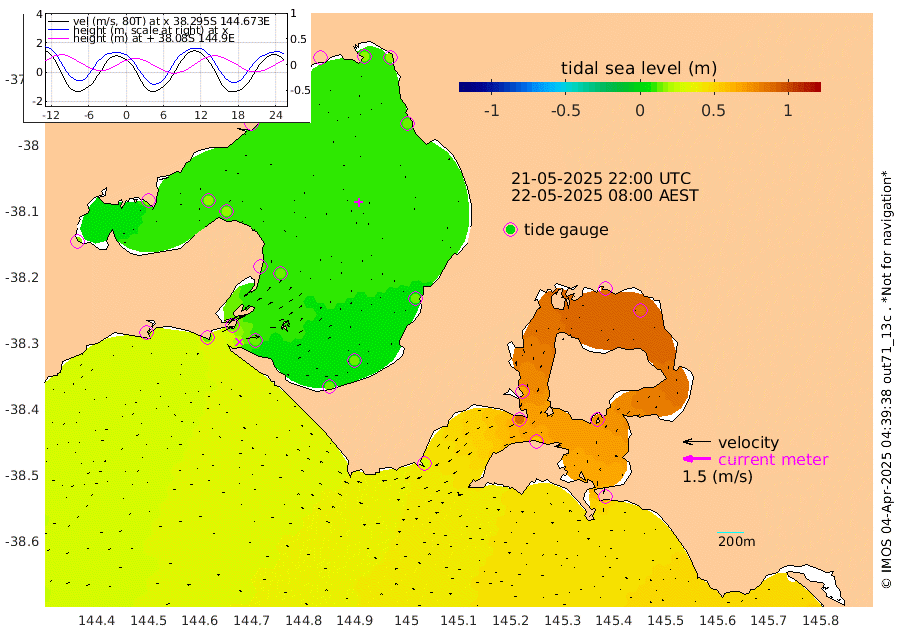 69cm San Remo 72cm Elizabeth Island 84cm Bouchier Channel 85cm Tooradin 55cm Cowes Jetty 64cm Western Port (Stony Point) 90cm Western Port (Sandy Point) 29cm Flinders Jetty 12cm Mornington 15cm Sandringham 14cm Rosebud Jetty 14cm Hovell Pile 14cm South Channel 14cm Point Lonsdale 13cm Queenscliff 14cm West Channel Pile 16cm Barwon Heads 14cm St Leonards 17cm Point Richards (Corio Bay) 16cm Point Richards Channel 17cm Geelong 11cm Werribee 15cm Altona 16cm Wilson Spit 16cm Melbourne (Williamstown) 16cm St Kilda