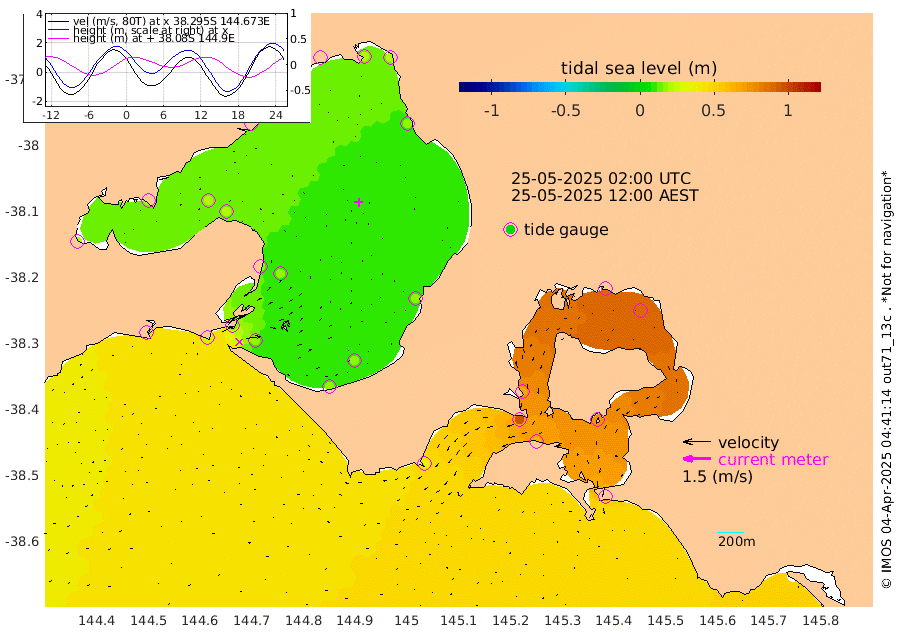 73cm San Remo 74cm Elizabeth Island 88cm Bouchier Channel 88cm Tooradin 62cm Cowes Jetty 66cm Western Port (Stony Point) 94cm Western Port (Sandy Point) 37cm Flinders Jetty 15cm Mornington 18cm Sandringham 16cm Rosebud Jetty 17cm Hovell Pile 18cm South Channel 24cm Point Lonsdale 18cm Queenscliff 17cm West Channel Pile 25cm Barwon Heads 17cm St Leonards 20cm Point Richards (Corio Bay) 19cm Point Richards Channel 21cm Geelong 13cm Werribee 19cm Altona 20cm Wilson Spit 19cm Melbourne (Williamstown) 19cm St Kilda