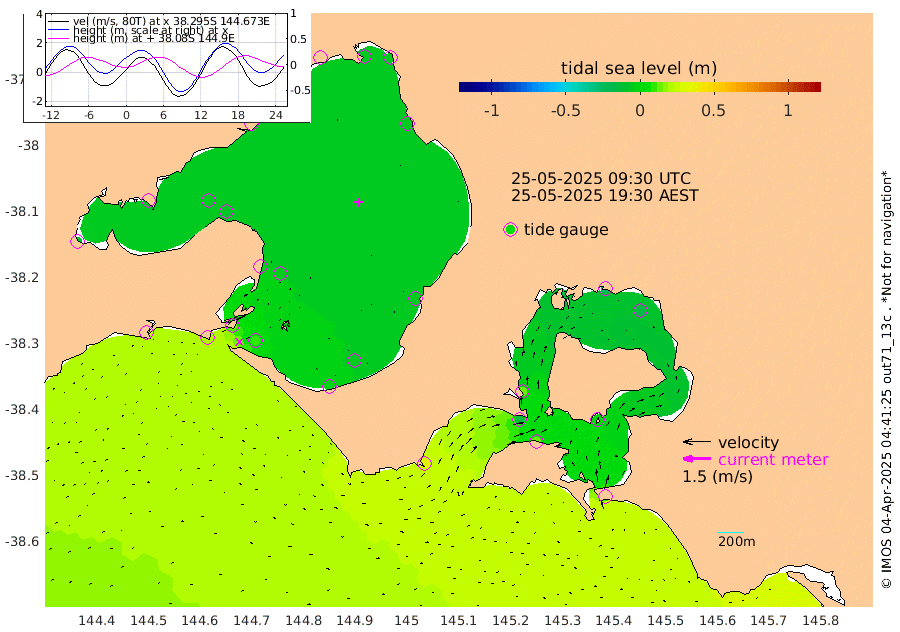 9cm San Remo 3cm Elizabeth Island -17cm Bouchier Channel -24cm Tooradin 11cm Cowes Jetty 12cm Western Port (Stony Point) -18cm Western Port (Sandy Point) 36cm Flinders Jetty -4cm Mornington -7cm Sandringham -3cm Rosebud Jetty -4cm Hovell Pile 8cm South Channel 22cm Point Lonsdale 14cm Queenscliff -4cm West Channel Pile 28cm Barwon Heads -4cm St Leonards -8cm Point Richards (Corio Bay) -7cm Point Richards Channel -10cm Geelong -4cm Werribee -8cm Altona -7cm Wilson Spit -7cm Melbourne (Williamstown) -7cm St Kilda
