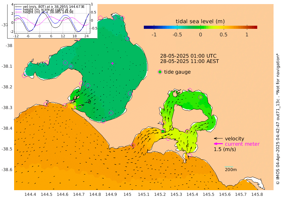 48cm San Remo 27cm Elizabeth Island 12cm Bouchier Channel -3cm Tooradin 52cm Cowes Jetty 46cm Western Port (Stony Point) 3cm Western Port (Sandy Point) 83cm Flinders Jetty -34cm Mornington -35cm Sandringham -32cm Rosebud Jetty -31cm Hovell Pile 2cm South Channel 45cm Point Lonsdale 13cm Queenscliff -31cm West Channel Pile 69cm Barwon Heads -30cm St Leonards -35cm Point Richards (Corio Bay) -33cm Point Richards Channel -39cm Geelong -32cm Werribee -34cm Altona -36cm Wilson Spit -35cm Melbourne (Williamstown) -36cm St Kilda
