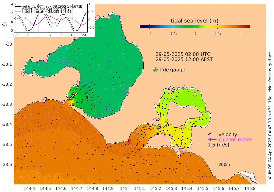 61cm San Remo 38cm Elizabeth Island 25cm Bouchier Channel 8cm Tooradin 66cm Cowes Jetty 58cm Western Port (Stony Point) 14cm Western Port (Sandy Point) 96cm Flinders Jetty -33cm Mornington -34cm Sandringham -32cm Rosebud Jetty -30cm Hovell Pile 5cm South Channel 53cm Point Lonsdale 17cm Queenscliff -30cm West Channel Pile 80cm Barwon Heads -30cm St Leonards -35cm Point Richards (Corio Bay) -33cm Point Richards Channel -39cm Geelong -31cm Werribee -33cm Altona -36cm Wilson Spit -34cm Melbourne (Williamstown) -35cm St Kilda