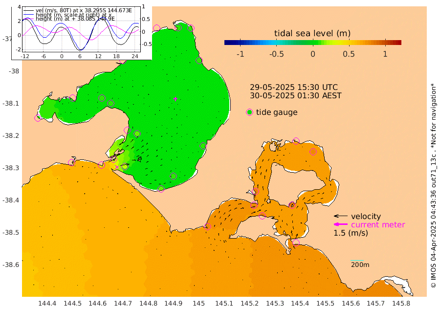 90cm San Remo 83cm Elizabeth Island 79cm Bouchier Channel 67cm Tooradin 83cm Cowes Jetty 82cm Western Port (Stony Point) 77cm Western Port (Sandy Point) 79cm Flinders Jetty 9cm Mornington 10cm Sandringham 12cm Rosebud Jetty 11cm Hovell Pile 25cm South Channel 44cm Point Lonsdale 31cm Queenscliff 12cm West Channel Pile 51cm Barwon Heads 11cm St Leonards 11cm Point Richards (Corio Bay) 10cm Point Richards Channel 9cm Geelong 9cm Werribee 10cm Altona 10cm Wilson Spit 10cm Melbourne (Williamstown) 11cm St Kilda