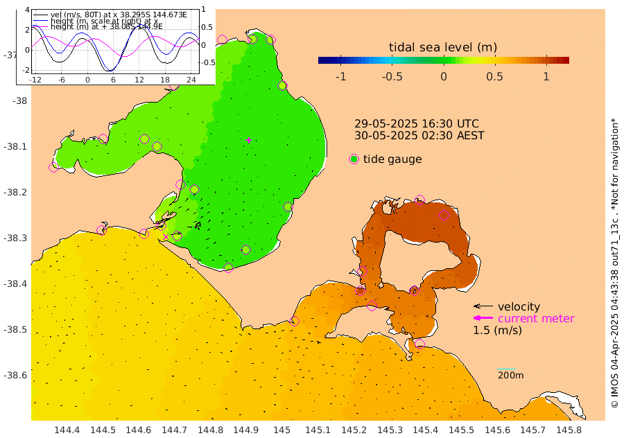 92cm San Remo 91cm Elizabeth Island 100cm Bouchier Channel 94cm Tooradin 82cm Cowes Jetty 84cm Western Port (Stony Point) 101cm Western Port (Sandy Point) 57cm Flinders Jetty 18cm Mornington 19cm Sandringham 19cm Rosebud Jetty 18cm Hovell Pile 23cm South Channel 31cm Point Lonsdale 25cm Queenscliff 19cm West Channel Pile 34cm Barwon Heads 19cm St Leonards 21cm Point Richards (Corio Bay) 20cm Point Richards Channel 20cm Geelong 17cm Werribee 20cm Altona 21cm Wilson Spit 20cm Melbourne (Williamstown) 21cm St Kilda
