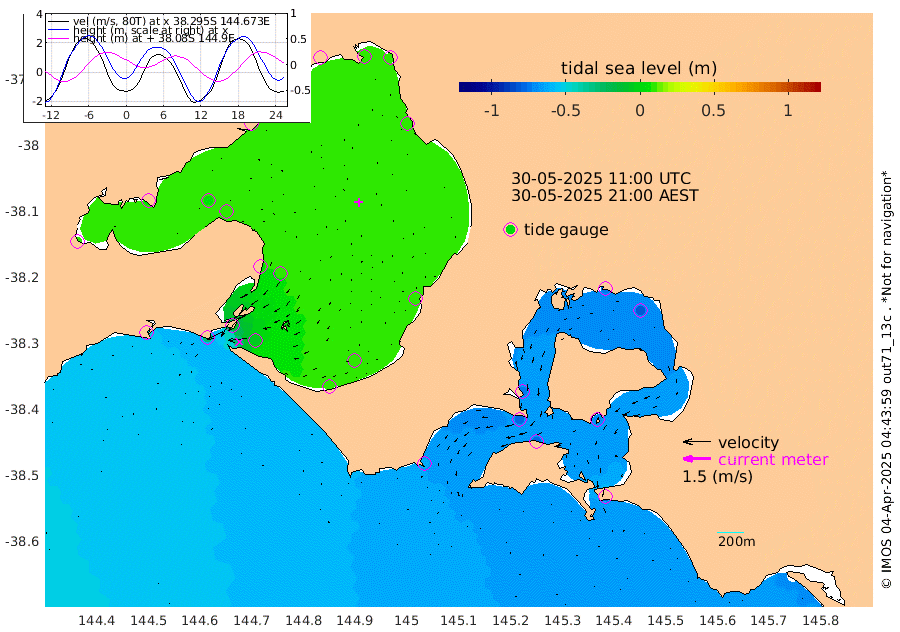 -81cm San Remo -71cm Elizabeth Island -81cm Bouchier Channel -75cm Tooradin -76cm Cowes Jetty -74cm Western Port (Stony Point) -77cm Western Port (Sandy Point) -62cm Flinders Jetty 10cm Mornington 10cm Sandringham 11cm Rosebud Jetty 9cm Hovell Pile -6cm South Channel -29cm Point Lonsdale -10cm Queenscliff 8cm West Channel Pile -48cm Barwon Heads 7cm St Leonards 8cm Point Richards (Corio Bay) 6cm Point Richards Channel 9cm Geelong 8cm Werribee 8cm Altona 7cm Wilson Spit 9cm Melbourne (Williamstown) 8cm St Kilda