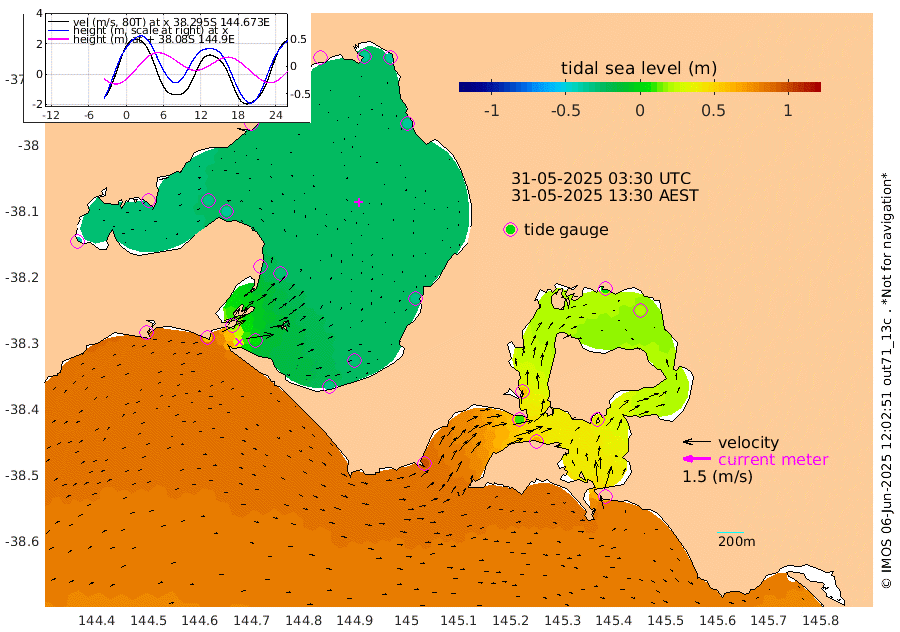 60cm San Remo 35cm Elizabeth Island 21cm Bouchier Channel 4cm Tooradin 66cm Cowes Jetty 57cm Western Port (Stony Point) 11cm Western Port (Sandy Point) 97cm Flinders Jetty -33cm Mornington -34cm Sandringham -32cm Rosebud Jetty -30cm Hovell Pile 5cm South Channel 54cm Point Lonsdale 18cm Queenscliff -29cm West Channel Pile 82cm Barwon Heads -29cm St Leonards -34cm Point Richards (Corio Bay) -32cm Point Richards Channel -39cm Geelong -29cm Werribee -33cm Altona -35cm Wilson Spit -34cm Melbourne (Williamstown) -34cm St Kilda