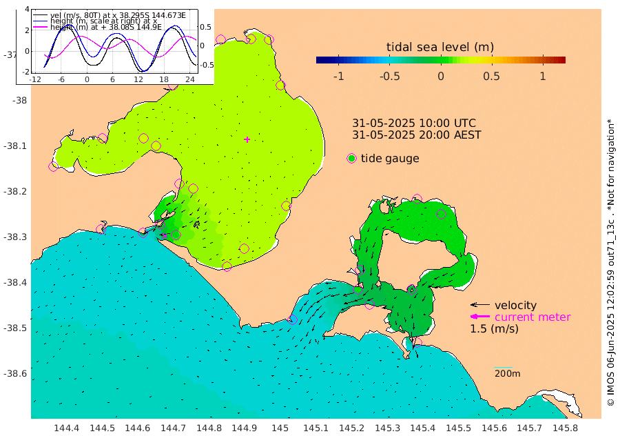-32cm San Remo -14cm Elizabeth Island 1cm Bouchier Channel 11cm Tooradin -33cm Cowes Jetty -26cm Western Port (Stony Point) 5cm Western Port (Sandy Point) -55cm Flinders Jetty 28cm Mornington 29cm Sandringham 26cm Rosebud Jetty 26cm Hovell Pile 3cm South Channel -26cm Point Lonsdale -5cm Queenscliff 25cm West Channel Pile -45cm Barwon Heads 25cm St Leonards 29cm Point Richards (Corio Bay) 28cm Point Richards Channel 33cm Geelong 24cm Werribee 28cm Altona 30cm Wilson Spit 29cm Melbourne (Williamstown) 29cm St Kilda