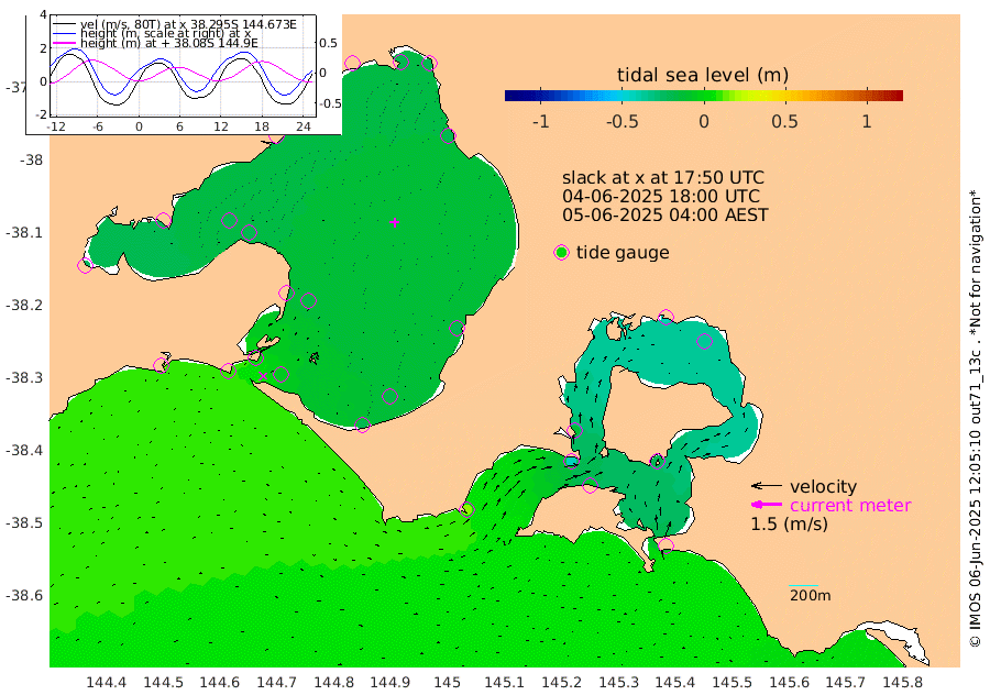 -13cm San Remo -22cm Elizabeth Island -37cm Bouchier Channel -44cm Tooradin -6cm Cowes Jetty -12cm Western Port (Stony Point) -43cm Western Port (Sandy Point) 18cm Flinders Jetty -20cm Mornington -20cm Sandringham -19cm Rosebud Jetty -18cm Hovell Pile -4cm South Channel 9cm Point Lonsdale 1cm Queenscliff -18cm West Channel Pile 16cm Barwon Heads -20cm St Leonards -22cm Point Richards (Corio Bay) -22cm Point Richards Channel -24cm Geelong -18cm Werribee -21cm Altona -25cm Wilson Spit -21cm Melbourne (Williamstown) -21cm St Kilda