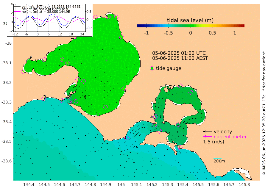 -32cm San Remo -24cm Elizabeth Island -16cm Bouchier Channel -5cm Tooradin -35cm Cowes Jetty -34cm Western Port (Stony Point) -8cm Western Port (Sandy Point) -50cm Flinders Jetty 8cm Mornington 8cm Sandringham 7cm Rosebud Jetty 7cm Hovell Pile -9cm South Channel -29cm Point Lonsdale -15cm Queenscliff 7cm West Channel Pile -39cm Barwon Heads 7cm St Leonards 9cm Point Richards (Corio Bay) 8cm Point Richards Channel 12cm Geelong 8cm Werribee 8cm Altona 10cm Wilson Spit 9cm Melbourne (Williamstown) 9cm St Kilda