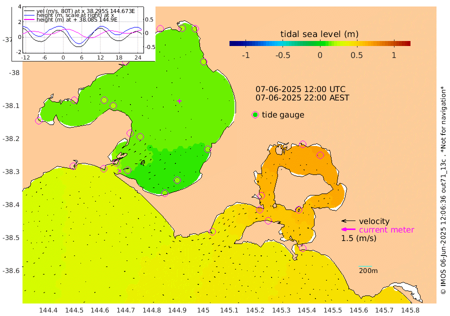 55cm San Remo 56cm Elizabeth Island 70cm Bouchier Channel 67cm Tooradin 47cm Cowes Jetty 53cm Western Port (Stony Point) 67cm Western Port (Sandy Point) 29cm Flinders Jetty 18cm Mornington 20cm Sandringham 18cm Rosebud Jetty 18cm Hovell Pile 16cm South Channel 17cm Point Lonsdale 16cm Queenscliff 18cm West Channel Pile 17cm Barwon Heads 18cm St Leonards 20cm Point Richards (Corio Bay) 20cm Point Richards Channel 21cm Geelong 17cm Werribee 20cm Altona 22cm Wilson Spit 19cm Melbourne (Williamstown) 20cm St Kilda