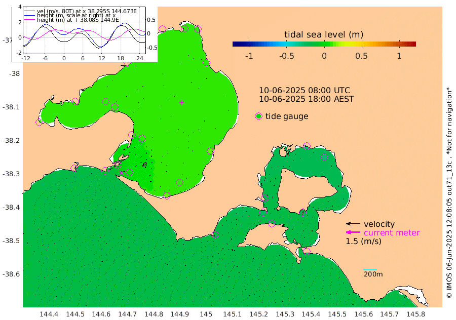 -27cm San Remo -20cm Elizabeth Island -29cm Bouchier Channel -27cm Tooradin -22cm Cowes Jetty -21cm Western Port (Stony Point) -26cm Western Port (Sandy Point) -16cm Flinders Jetty 12cm Mornington 9cm Sandringham 11cm Rosebud Jetty 10cm Hovell Pile 4cm South Channel -4cm Point Lonsdale 3cm Queenscliff 10cm West Channel Pile -13cm Barwon Heads 11cm St Leonards 10cm Point Richards (Corio Bay) 10cm Point Richards Channel 10cm Geelong 10cm Werribee 9cm Altona 10cm Wilson Spit 10cm Melbourne (Williamstown) 10cm St Kilda
