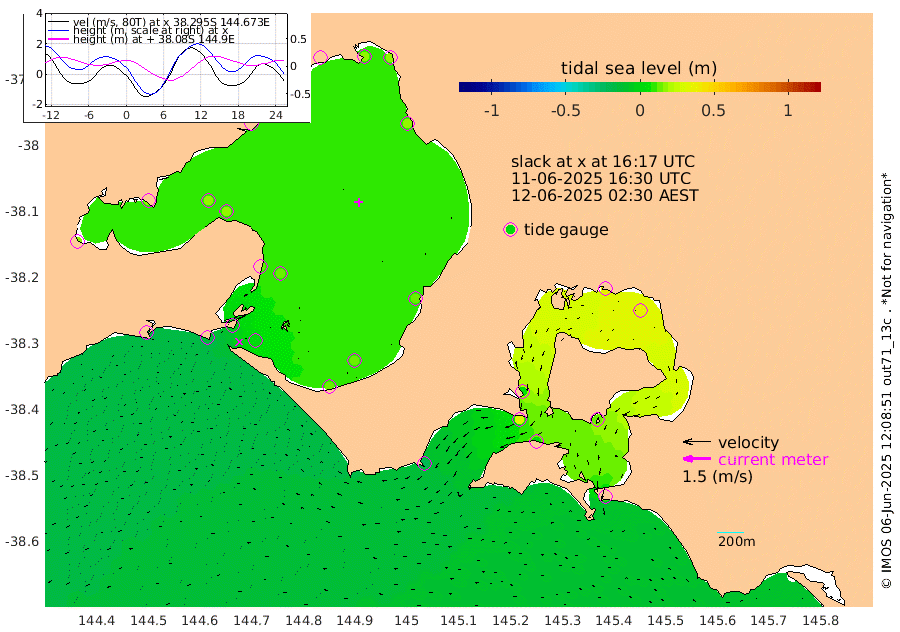 9cm San Remo 15cm Elizabeth Island 34cm Bouchier Channel 40cm Tooradin 6cm Cowes Jetty 7cm Western Port (Stony Point) 33cm Western Port (Sandy Point) -22cm Flinders Jetty 14cm Mornington 15cm Sandringham 12cm Rosebud Jetty 13cm Hovell Pile 0cm South Channel -14cm Point Lonsdale -4cm Queenscliff 13cm West Channel Pile -20cm Barwon Heads 12cm St Leonards 16cm Point Richards (Corio Bay) 15cm Point Richards Channel 18cm Geelong 15cm Werribee 15cm Altona 16cm Wilson Spit 16cm Melbourne (Williamstown) 16cm St Kilda