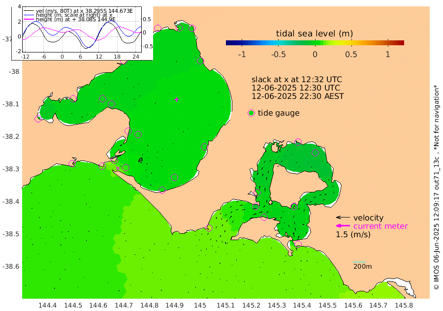 8cm San Remo 5cm Elizabeth Island -13cm Bouchier Channel -22cm Tooradin 7cm Cowes Jetty 6cm Western Port (Stony Point) -11cm Western Port (Sandy Point) 24cm Flinders Jetty 1cm Mornington 0cm Sandringham 4cm Rosebud Jetty 3cm Hovell Pile 10cm South Channel 16cm Point Lonsdale 14cm Queenscliff 3cm West Channel Pile 16cm Barwon Heads 1cm St Leonards 0cm Point Richards (Corio Bay) -1cm Point Richards Channel -2cm Geelong -1cm Werribee -1cm Altona -2cm Wilson Spit 0cm Melbourne (Williamstown) 0cm St Kilda