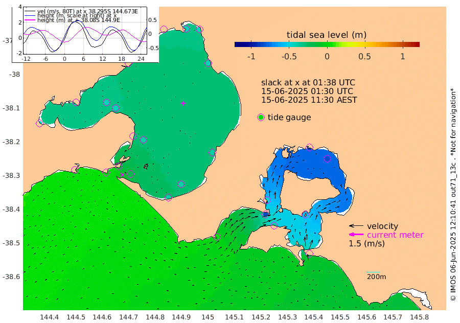 -46cm San Remo -59cm Elizabeth Island -84cm Bouchier Channel -90cm Tooradin -36cm Cowes Jetty -47cm Western Port (Stony Point) -86cm Western Port (Sandy Point) 4cm Flinders Jetty -39cm Mornington -43cm Sandringham -38cm Rosebud Jetty -39cm Hovell Pile -22cm South Channel -2cm Point Lonsdale -16cm Queenscliff -39cm West Channel Pile 12cm Barwon Heads -38cm St Leonards -45cm Point Richards (Corio Bay) -42cm Point Richards Channel -47cm Geelong -39cm Werribee -43cm Altona -44cm Wilson Spit -43cm Melbourne (Williamstown) -44cm St Kilda