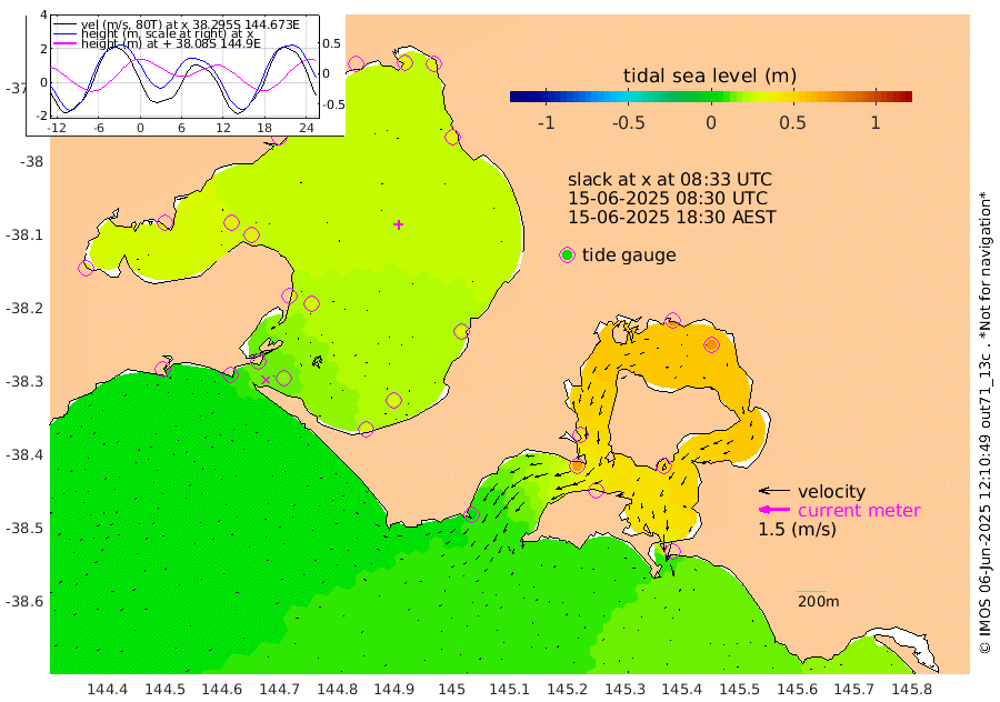 35cm San Remo 47cm Elizabeth Island 71cm Bouchier Channel 77cm Tooradin 31cm Cowes Jetty 40cm Western Port (Stony Point) 70cm Western Port (Sandy Point) 1cm Flinders Jetty 32cm Mornington 34cm Sandringham 29cm Rosebud Jetty 29cm Hovell Pile 17cm South Channel 6cm Point Lonsdale 13cm Queenscliff 30cm West Channel Pile -4cm Barwon Heads 31cm St Leonards 35cm Point Richards (Corio Bay) 34cm Point Richards Channel 37cm Geelong 29cm Werribee 34cm Altona 36cm Wilson Spit 33cm Melbourne (Williamstown) 34cm St Kilda