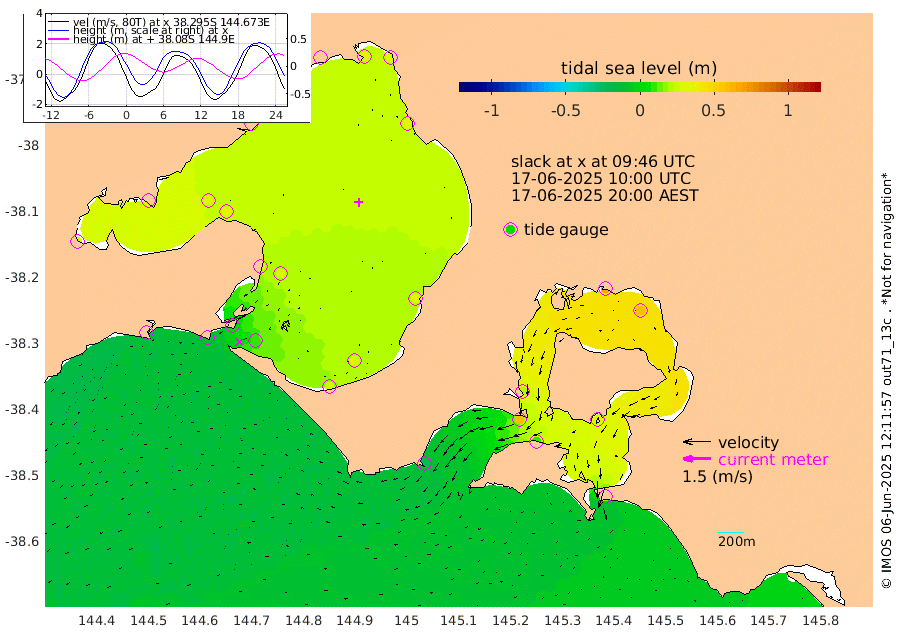 16cm San Remo 31cm Elizabeth Island 57cm Bouchier Channel 65cm Tooradin 11cm Cowes Jetty 20cm Western Port (Stony Point) 57cm Western Port (Sandy Point) -23cm Flinders Jetty 31cm Mornington 33cm Sandringham 28cm Rosebud Jetty 28cm Hovell Pile 10cm South Channel -10cm Point Lonsdale 3cm Queenscliff 28cm West Channel Pile -22cm Barwon Heads 29cm St Leonards 33cm Point Richards (Corio Bay) 33cm Point Richards Channel 36cm Geelong 27cm Werribee 33cm Altona 35cm Wilson Spit 32cm Melbourne (Williamstown) 32cm St Kilda