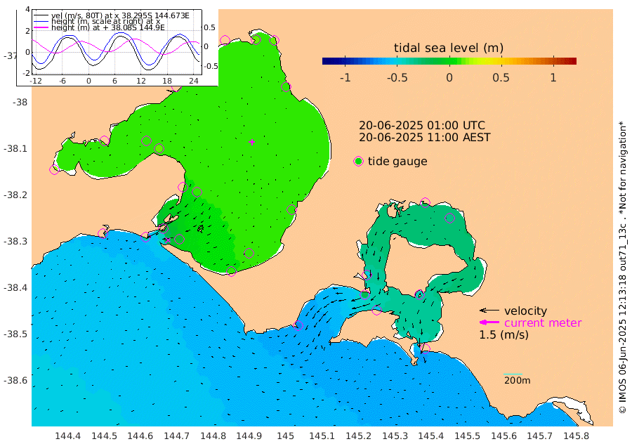 -49cm San Remo -42cm Elizabeth Island -31cm Bouchier Channel -17cm Tooradin -54cm Cowes Jetty -51cm Western Port (Stony Point) -21cm Western Port (Sandy Point) -69cm Flinders Jetty 9cm Mornington 10cm Sandringham 9cm Rosebud Jetty 10cm Hovell Pile -11cm South Channel -38cm Point Lonsdale -19cm Queenscliff 9cm West Channel Pile -52cm Barwon Heads 8cm St Leonards 12cm Point Richards (Corio Bay) 10cm Point Richards Channel 15cm Geelong 11cm Werribee 10cm Altona 12cm Wilson Spit 12cm Melbourne (Williamstown) 12cm St Kilda