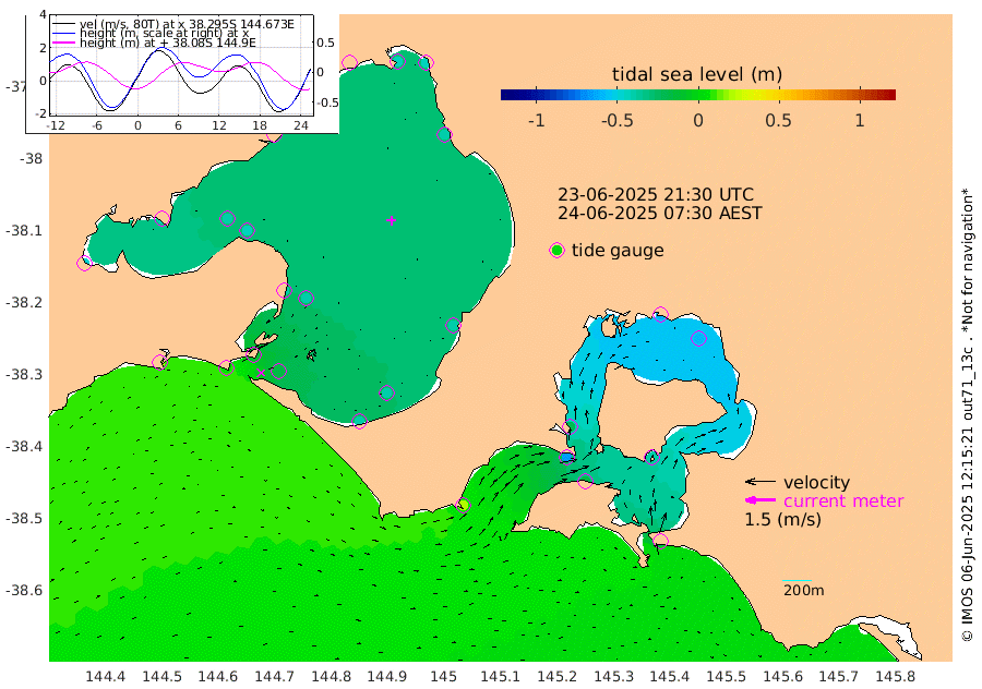 -26cm San Remo -39cm Elizabeth Island -57cm Bouchier Channel -63cm Tooradin -15cm Cowes Jetty -22cm Western Port (Stony Point) -66cm Western Port (Sandy Point) 20cm Flinders Jetty -39cm Mornington -41cm Sandringham -39cm Rosebud Jetty -38cm Hovell Pile -18cm South Channel 5cm Point Lonsdale -12cm Queenscliff -39cm West Channel Pile 19cm Barwon Heads -38cm St Leonards -43cm Point Richards (Corio Bay) -41cm Point Richards Channel -46cm Geelong -36cm Werribee -41cm Altona -44cm Wilson Spit -42cm Melbourne (Williamstown) -43cm St Kilda