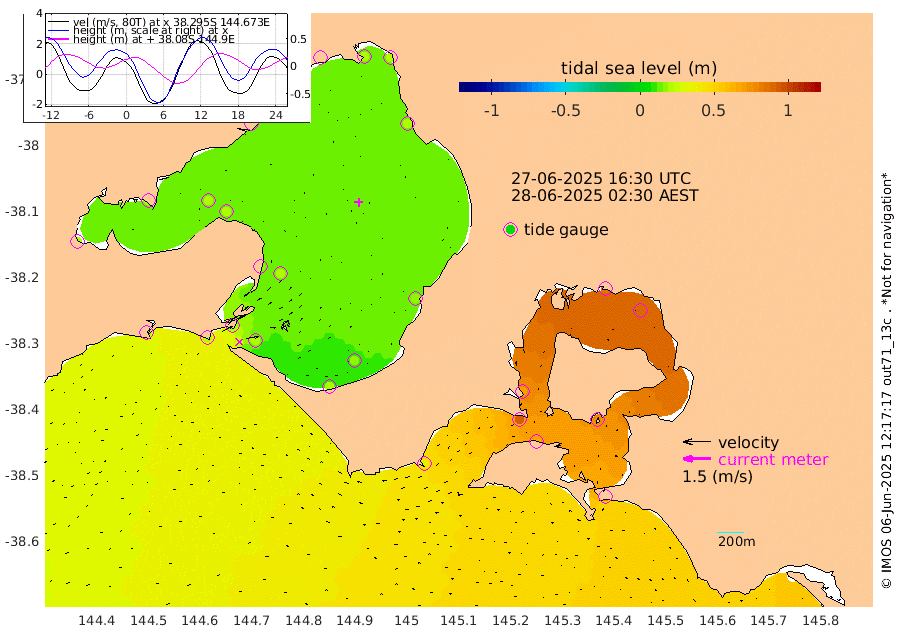 76cm San Remo 78cm Elizabeth Island 89cm Bouchier Channel 86cm Tooradin 66cm Cowes Jetty 69cm Western Port (Stony Point) 91cm Western Port (Sandy Point) 40cm Flinders Jetty 18cm Mornington 20cm Sandringham 19cm Rosebud Jetty 18cm Hovell Pile 19cm South Channel 22cm Point Lonsdale 19cm Queenscliff 19cm West Channel Pile 22cm Barwon Heads 19cm St Leonards 21cm Point Richards (Corio Bay) 20cm Point Richards Channel 21cm Geelong 17cm Werribee 20cm Altona 21cm Wilson Spit 20cm Melbourne (Williamstown) 21cm St Kilda