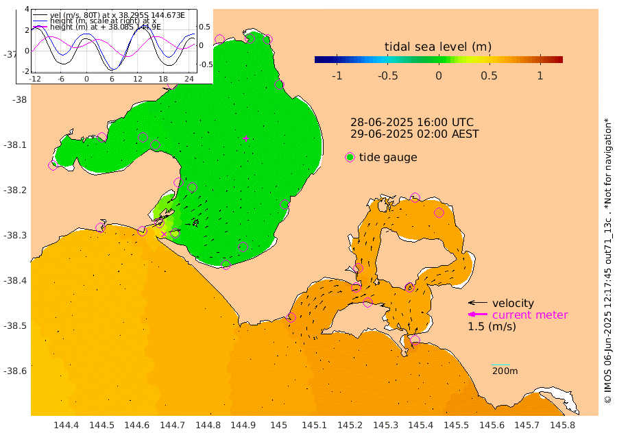 81cm San Remo 74cm Elizabeth Island 70cm Bouchier Channel 60cm Tooradin 75cm Cowes Jetty 75cm Western Port (Stony Point) 67cm Western Port (Sandy Point) 73cm Flinders Jetty 5cm Mornington 7cm Sandringham 8cm Rosebud Jetty 7cm Hovell Pile 22cm South Channel 42cm Point Lonsdale 28cm Queenscliff 8cm West Channel Pile 50cm Barwon Heads 7cm St Leonards 7cm Point Richards (Corio Bay) 6cm Point Richards Channel 5cm Geelong 6cm Werribee 6cm Altona 5cm Wilson Spit 7cm Melbourne (Williamstown) 7cm St Kilda
