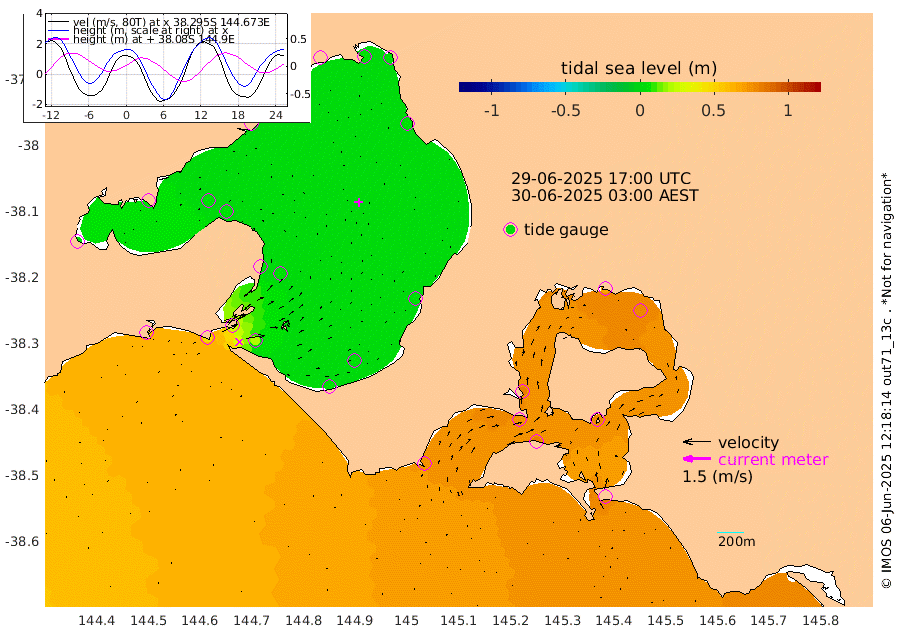 84cm San Remo 77cm Elizabeth Island 76cm Bouchier Channel 67cm Tooradin 80cm Cowes Jetty 80cm Western Port (Stony Point) 72cm Western Port (Sandy Point) 74cm Flinders Jetty 4cm Mornington 6cm Sandringham 6cm Rosebud Jetty 6cm Hovell Pile 21cm South Channel 42cm Point Lonsdale 28cm Queenscliff 7cm West Channel Pile 51cm Barwon Heads 6cm St Leonards 6cm Point Richards (Corio Bay) 5cm Point Richards Channel 4cm Geelong 6cm Werribee 6cm Altona 4cm Wilson Spit 5cm Melbourne (Williamstown) 6cm St Kilda
