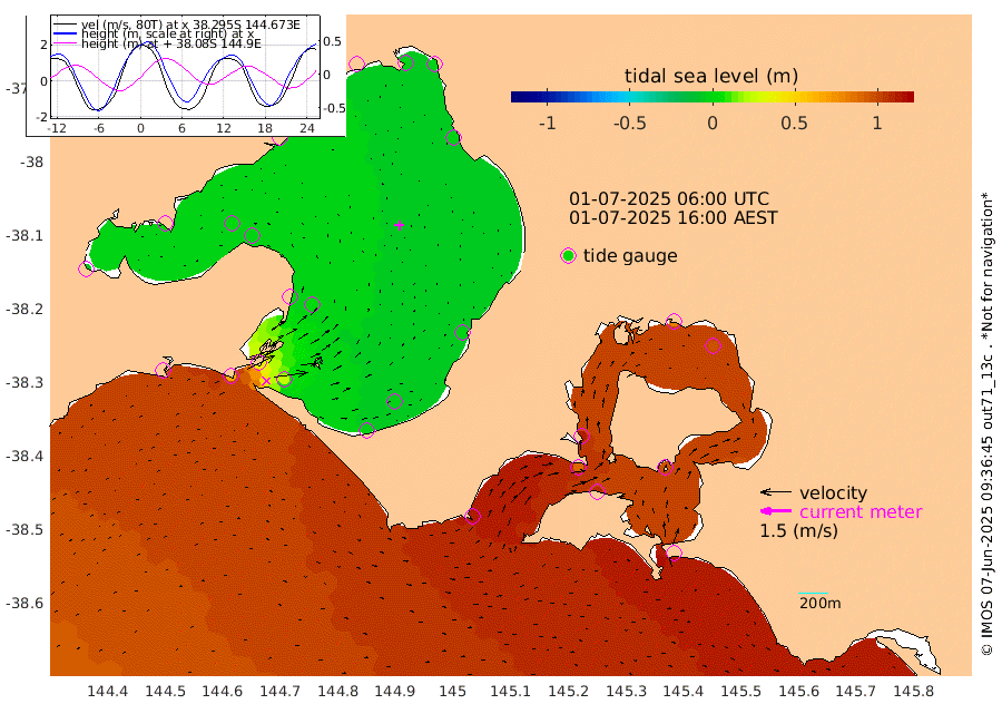 109cm San Remo 95cm Elizabeth Island 96cm Bouchier Channel 82cm Tooradin 107cm Cowes Jetty 109cm Western Port (Stony Point) 88cm Western Port (Sandy Point) 109cm Flinders Jetty -1cm Mornington -2cm Sandringham -1cm Rosebud Jetty -1cm Hovell Pile 25cm South Channel 65cm Point Lonsdale 36cm Queenscliff 1cm West Channel Pile 87cm Barwon Heads 3cm St Leonards -1cm Point Richards (Corio Bay) 2cm Point Richards Channel -4cm Geelong -1cm Werribee -1cm Altona 1cm Wilson Spit -2cm Melbourne (Williamstown) -1cm St Kilda